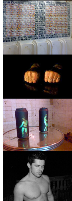 From top to bottom: Hustler Frieze - 2008 Detail Inkjet, Stigmata - 2008 - Plaster Cast of Artists Fists, 35mm Slide Projection, Can-Can Dancers - 2008, Video projection, Stephen - 2009 B&W Inkjet Print. All images are courtesy of Carl Hopgood and copyrighted to Carl Hopgood.