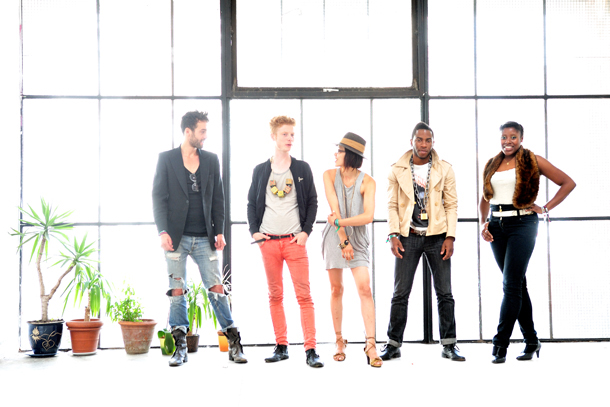 Walking away in an unbelievable daze, SUPERSWEET can’t fathom how we’ve spent almost three effortless hours with the five-piece band Ezra Bang and Hot Machine. Arriving with premature oomph, early birds bassist Sarah Belle and synth player Linus Jackson get cozy and chuckle about Ralph Phillips’ determined stage invasions, even unintentionally two-finger swearing to a Public Enemy crowd, after their war speech was lyrically delivered. Continuing to joke about the unavoidable tardiness of other members, the duo giggle how endearingly slow second synth player Mio Kuromori walks; Linus even caught Ralph pushing her down a NYC street! In strutting form, polished front man Ezra Bang arrives wearing his trademark bondage, a hardy chain with gold lock, and puts a game face on for our delving questions, only after he’s revealed who is his most proud gig punter: his mum!